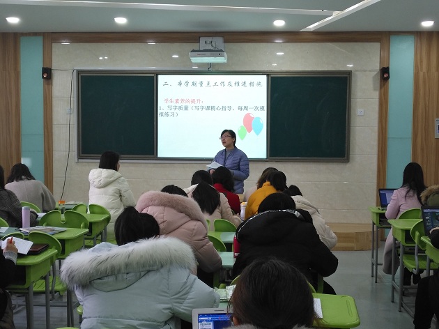 最后,教研组长曹老师围绕早读安排、写字训练、作业批改、作文布置等方面强调了本学期语文老师们的重点任务。