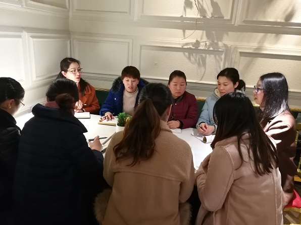 工作室根据中期评估中专家组的建议及时反思工作室的研修策略,合理规划后阶段的研修工作。徐文娟老师组织成员就“英语课程校本化实施”进行研讨,大家结合“在英语课程校本化实施方面已经形成了哪些策略或是做法”、 “在英语课程校本化实施方面还有哪些不足和提升空间”以及“后阶段在英语课程校本化实施方面还可以做哪些创新或尝试”三个方面进行分享和交流。通过分享和研讨,大家在后阶段如何利用课程校本化实施的策略进行基于校情的课程校本化实施有了进一步的思考。