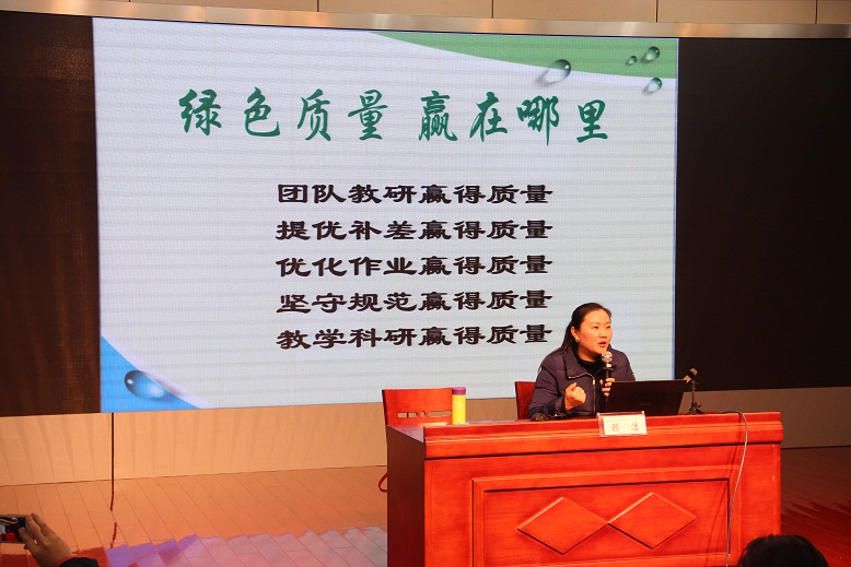 教育教学质量是学校办学品质的量尺,如何提升质量是全体教师共同目标。有人说,团队教研赢得质量,提优补差赢得质量,优化作业赢得质量,坚守规范赢得质量,教学科研赢得质量……顾洁老师面向春小全体教师做了《绿色质量 赢在哪里》的专题讲座。顾老师从“激发师生的兴趣,是赢得教学质量的前提”、“ 融洽的师生关系,是赢得教学质量的润滑剂”、“ 严格的常规管理,是赢得教学质量的保证”三个方面展开,结合自身的实践给老师们分享了提升教学质量的经验,让我们受益匪浅。站在学生的立场教学就要真实而全面地了解学生;站在学生的立场教学就是要以学习方式的转变为核心建构课堂;站在学生的立场教学就要教师从容应对课堂生成。