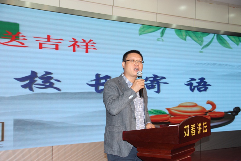 在“学模范”环节,张丽娟老师作为来我校轮岗交流的老师,分享了她来春江小学工作两个月来的所见、所思、所得,也分享了她教育教学工作中的经验。学校还请回了我校外出轮岗交流的朱玉刚老师、丁雅娟老师和王桂玲老师,由他们讲述轮岗交流的故事……在“谈感悟”环节,主持人通过“取得成功的关键词”和“成功背后的故事”等话题,与体育团队和鼓号队团队一起聊起了训练的酸甜苦辣。体育团队第一责任人朱龙主任分享了他与运动员之间的三个小故事,娓娓道来中,我们看到了朱老师在体育训练中的执着和智慧,也让全体老师意识到,要做好任何一项工作,信念是首要的,行动中要有思考、有评价,要充分利用家校合力。在“送吉祥”环节,刘明副校长和唐健副校长分别点评了本次活动,刘明副校长还以《以文化的力量变革课堂》为题,给全体老师带来了促进专业成长的大餐,唐健副校长结合安全出行,对全体老师提出了细致的要求。