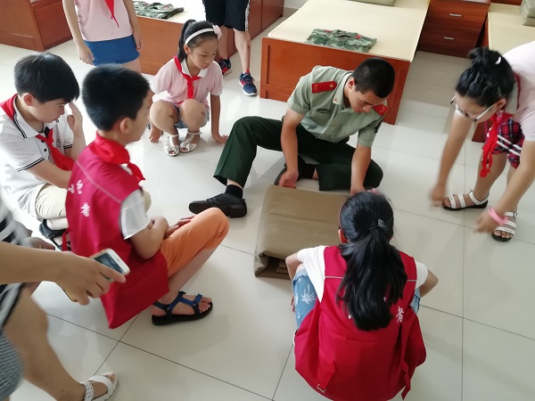此次活动中,少先队员们学习了中国人民解放军的军史,在帅气的边防武警叔叔指导下学习防身拳术、体验武警叔叔的器械训练和日常的生活。队员们们还参观了武警叔叔的营房,干净整洁的营房让同学们大开眼界。武警叔叔们手把手地教叠被子,队员们一个个认真努力,学的有模有样,还真有小军人的气概呢!