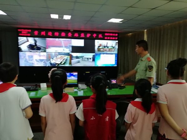 随后少先队员一起参观了边防检查站监护中队指挥中心,队员们对现代军人的生活充满好奇。在与武警叔叔们亲切的交谈中,进一步了解现代军事、贴近了现代军人的军旅生活。随后,春笋娃们和春小的辅导员老师一起为武警常州边防检查站监护中队的武警叔叔们送上了防暑降温品,表达对武警叔叔的深情厚爱和感激之情。