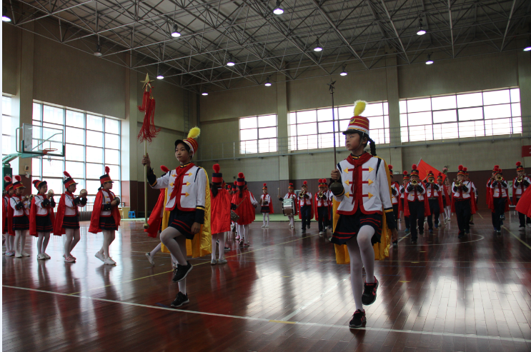 招展的队旗舞起,春江小学少先队鼓号队用整齐划一的队形,以及嘹亮的鼓乐声,表达了队员们为红领巾骄傲,为祖国自豪,对未来充满无限憧憬之美好的心声!也震撼了所有在场的辅导员老师们。