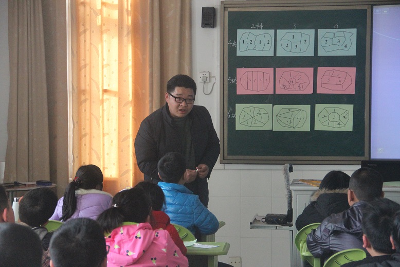 吴荣强老师执教的是《四色猜想》,是一节数学主题拓展教学研究课,课中安排了多次数学实验,为每位学生提供了交流的机会、操作的机会、发现的机会、探索的机会,吴老师引领学生去猜想、去操作、去验证,他善于把握学生资源,精心选择且并联呈现学生资源,层层深入展开教学,引发学生深思,学生的兴趣被激发,思维被打开,他们的猜想与验证的意识与水平在本节课中得到一定程度的提升。四色猜想,猜出了智慧,激活了学生乐于思考的因子。
