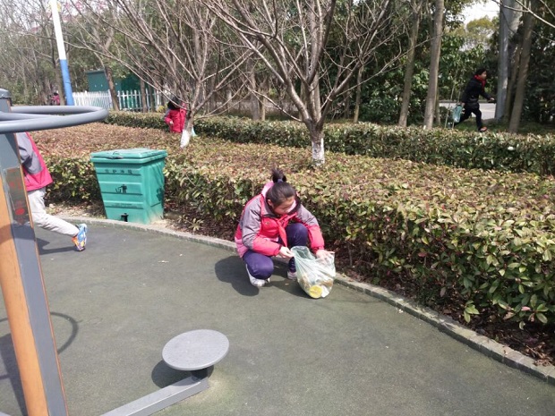 3月3日中午,春江中心小学五年级全体少先队员走上街头、走进社区,开展学雷锋活动。在学校辅导员的带领下,孩子们拿着抹布、塑料袋、扫帚等工具,来到百馨苑社区、春江镇政府和楠木厅打扫卫生。少先队员们个个热情高涨,有的弯着腰、有的弓步半蹲、还有的偏着头趴下,他们仔细地搜索着矮树下、草丛中的纸屑、烟头、瓜子壳等细小的垃圾。经过一个小时的仔细“搜索”,孩子们手中的袋子也鼓了起来。看着洁净的环境,孩子们露出了灿烂的笑容。