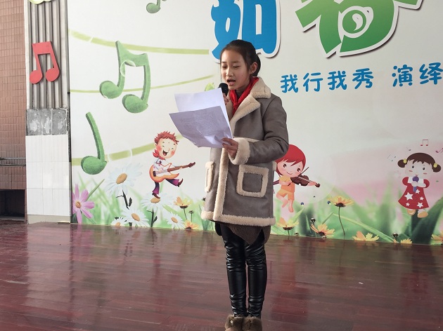 决赛分三个环节:自我介绍、诗文朗诵和才艺展示,评委老师现场亮分。比赛中,小选手们的一举止、一投足无不散发着儿童的魅力、洋溢着自信的风采,牵动着观众和评委的心。同学们幽默风趣的自我介绍、声情并茂的诗文朗诵、形式多样的才艺展示,不禁让评委老师连连称赞。比赛落幕,来自五(4)班的胡海林、五(3)班的李轩、五(1)班的付郁蕾以及五(2)班的吴宇轩几位同学脱颖而出成为“五星主持人”,其余几位同学被评为“四星主持人”,一起参加电视台的工作。