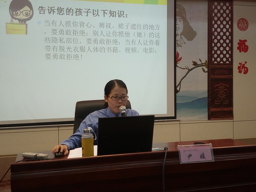 孩子是祖国的未来,是家庭的希望。孩子的健康成长,是我们共同的心愿。然而近年来,儿童性侵案件频发,并呈低龄化趋势。家长是孩子成长道路上不可或缺的引路人,守护孩子健康成长更是我们义不容辞的责任。为更好地帮助孩子增强自我保护的意识和能力,提高家长教育孩子的水平和重视程度,加快建立健全“学校、家庭、社会”三位一体的儿童安全防护体系,推进幸福家庭创建工作纵深发展,6月2日下午,新北区春江镇计划生育服务站、春江中心小学联合举办了“守护童真 新北同行”春江镇儿童性侵防护及自我保护专题讲座,为我们作讲座的是新北区人民检察院小橘灯公益法律服务汇、新北区人民检察院助理检察员尹媛。聆听本次讲座的是春江小学一至三年级女生的妈妈。