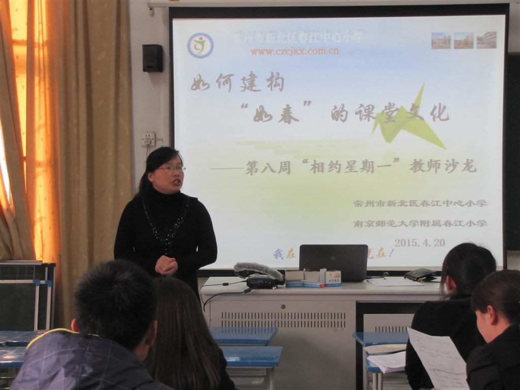 最后唐健副校长总结回顾了我们课堂文化研究的历程,希望我们能进一步把充满温暖、充满生机、充满希望的课堂文化,在各自的教学实践中,得到落实和发展,让每一个春小师生在反思研究中幸福生长。
