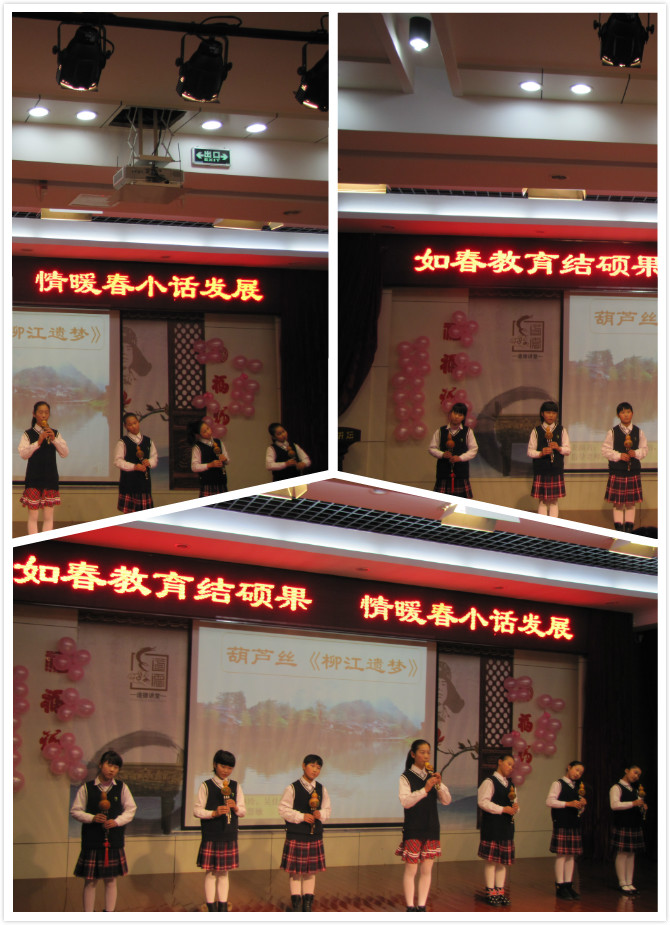 最吸引大家眼球的是春小实施如春教育的成果汇报活动,春小人在一年中校本化实施各项课程,社团建设更是取得了丰硕的成果。情景剧《今天我当校长》展示了春小孩子们如何争当学校的主人,在做值周校长中如何巧妙处理问题,给人深深的启迪。生动形象的英语课本剧《do re me》更是展示了春小孩子的良好素养;孩子们在舞台上尽情歌唱,表扬唱《想唱就唱》唱出了孩子的自信,合唱社团的大合唱《在灿烂的阳光下》显示了高超的合唱水平,一年级孩子的亲子合唱更是引起了全场的共鸣;师生们激情舞蹈,《茉莉花》《绿池清波》展示了舞蹈社团孩子的功底,激情四溢的街舞表演展示了孩子的无穷活力,还有那令人眼花缭乱的《环保时装秀》更是展现了孩子们的心灵手巧,富有童趣的舞蹈《十一点半》彰显了孩子的天真活泼,还用舞蹈带给大家启示……整个活动整整持续了近两个小时,充分展现了春小人实施如春教育的靓丽风采,正如家长所说:“今天的活动让我们看到了春小如春教育的丰富成果,看到了春小老师的敬业创新,我们把孩子交给春小是放心的……”