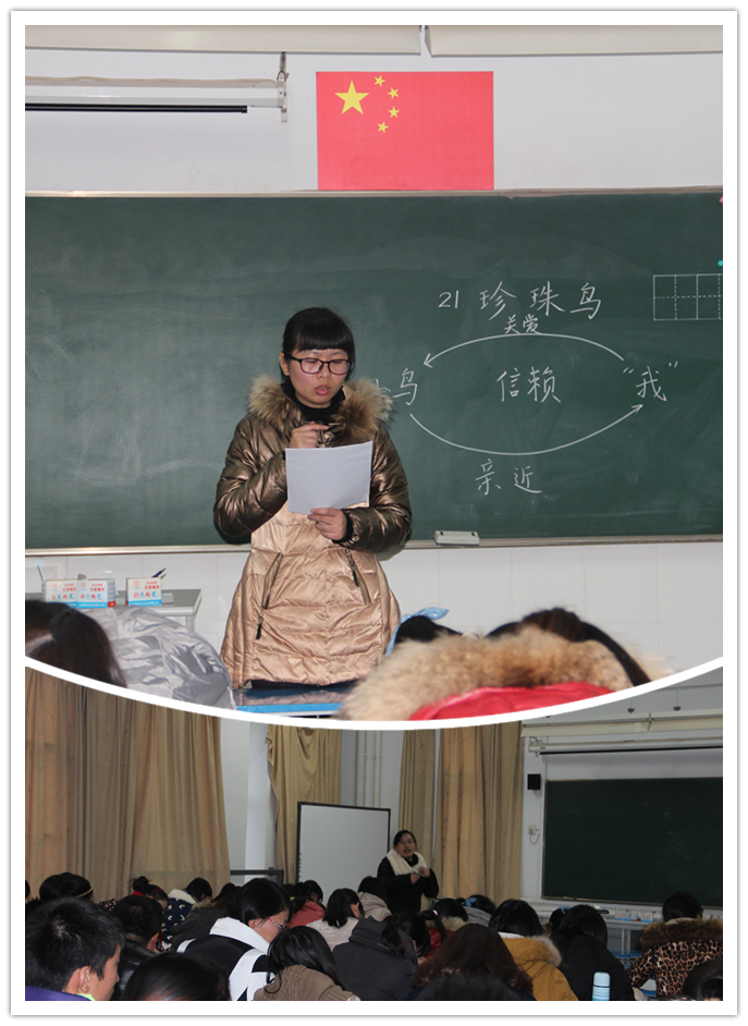 走进异域首先由陈梦婷老师执教《珍珠鸟》。课堂上陈老师以情为切入点,创设教学情境,在感受中学习。教学一开始首先创设情境 ,激发起学生学习的兴趣。在学生初读了课文的基础上,教师创设质疑情境,诱发学生大胆质疑,生成问题。然后再围绕学生生成的重点问题,探索珍珠鸟与作者情感变化的线索。充分体现了“学生是学习的主题,教师是学生学习的组织者和引导者”这一教学理念。其次以读为本,引导学生在体验中学习。十分重视学生在阅读过程中的主体地位,让学生与文本对话、师生对话、学生与学生对话的过程中获得独特的感受和体验。一是引导学生充分地读文;二是让充分发挥想象力,使学生与作者进行心灵的碰撞与交流。在这种积极主动的思维与情感活动中,学生对“信赖,往往创造出美好的境界”这句有了更深的感悟。