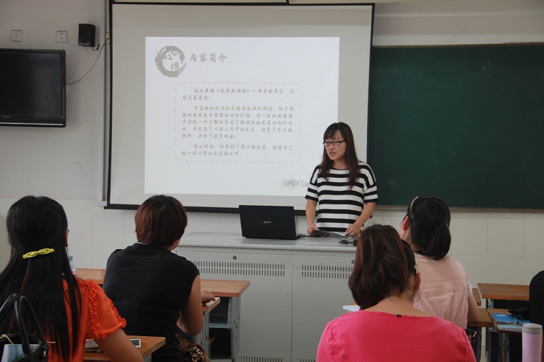 总论坛后举行平行讲座,全校教师以年级为单位,进入分会场开展活动,由年级组长主持,每位教师进行暑期学习心得的分享。教师们的分享精彩纷呈,内容丰富多彩:有教育专著的理论导读,有观影后的教育思考;有听讲座后的深度反思;还有文学名著的心得体会……形式各具特色:有生动的故事讲述,有现场的游戏互动,有配乐的激情演讲,有直观的视频播放……每一位教师都制作了课件,用心、用情一起平等交流,交互进行简要点评。平行讲座让每一位教师都参与分享和展示活动,教师们的心态更开放,交流更和谐,它尊重了每一位教师的学习和被学习的需求,提升了教师职业尊严感。