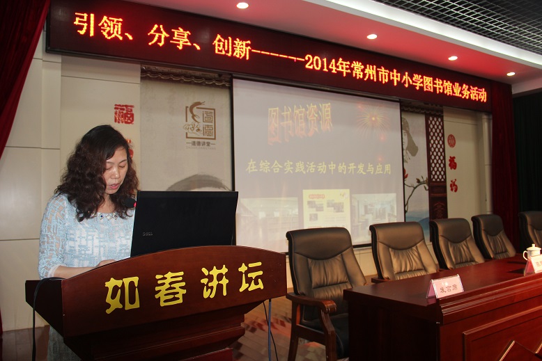 本次大会是一次图书馆管理创新和新科技应用的交流盛会,江苏省第六届网络读书及省第一届论文评选活动的总结表彰,获奖代表常州市第五中学的缪建国馆长和常州市实验小学的周红馆长分享了各自图书馆的先进经验和特色,他们对图书馆事业的热爱与追求值得我们全体图书馆人赞赏与学习;新北区春江小学徐燕娟校长《春小是一本打开的立体书》专题建设发言和春江小学图书馆韩丽琴馆长关于《变管理为服务,让每个春小人沐浴书香——立体馆藏、立体阅读、立体服务的且行且思》专题交流向与会的领导、专家和全体图书馆人汇报了春江小学的图书馆建设——根植“书香”沃土,做一个有根的中国人,为学生的幸福人生奠基!学校的中华美德园,基于学校课程建设的文化长廊基地,春江非物质文化遗产展示馆、“地球村”实践基地,春小人徜徉在“书海”中!打开这本书,就是打开一个多彩的世界;打开这本书,就是打开一种生活方式;打开这本书,就是打开一个绚丽的梦想!一园、一廊、一馆、一村,立体馆藏、立体阅读、立体服务的方式不仅厚实了春小这本现代的书,引领春小人穿越中华五千年历史,更让全体春小人从春江出发,走出中国,走向世界,让地球村驻足在我们春小这本书里!