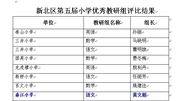 ——热烈祝贺我校语文教研组被评为新北区“优秀教研组”