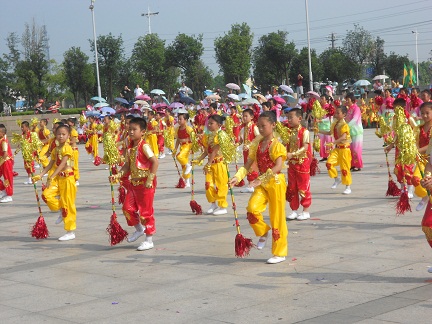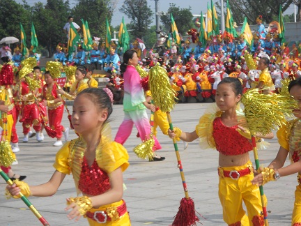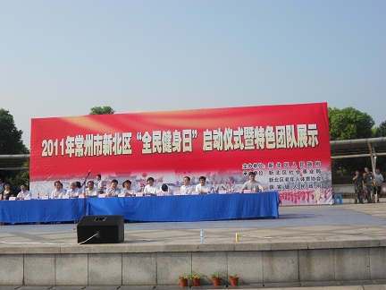 春江的打莲响、罗溪的威风锣鼓、西夏墅的马灯队、龙虎的彩带秧歌舞、薛家的木兰扇、河海的排舞、三井的健身秧歌等七个百人特色团队在“全民健身日”启动仪式上的精彩展示,正引领着新北区的所有人民、全常州市的人民积极响应“每天锻炼一小时,健康工作五十年,幸福生活一辈子!”的号召,为构建和谐、健康的“新常州”而共同努力!