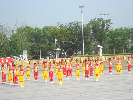 春江小学打莲响团队参加2011年新北区“全民健身日”启动仪式暨特色团队展示活动