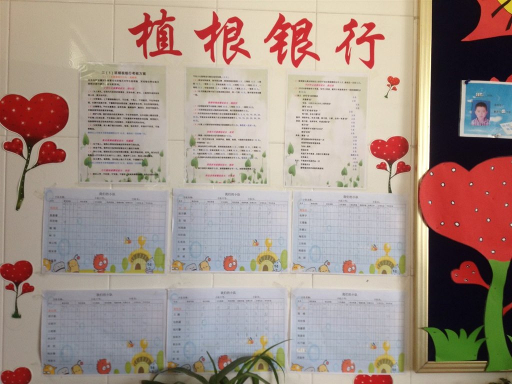 由柜子上每天的得失分情况,到一个月汇总一次,月分汇总到贴在墙壁的植根银行栏目!