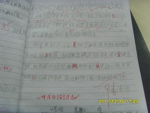 我在批改日记时,尽量少写评语,多写心语。日记本上有了老师的心语,会在学生中争相传看,起到了导向,激励作用。心语常写的有:回应学生提出的问题,探讨他们感兴趣的话题,赞美他们的进步和优点,暗示日记中的某些不足,点拨他们应查找的资料,让学生感到你很喜欢他,进而亲近你,信任你。