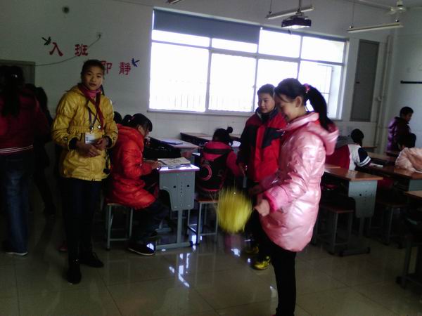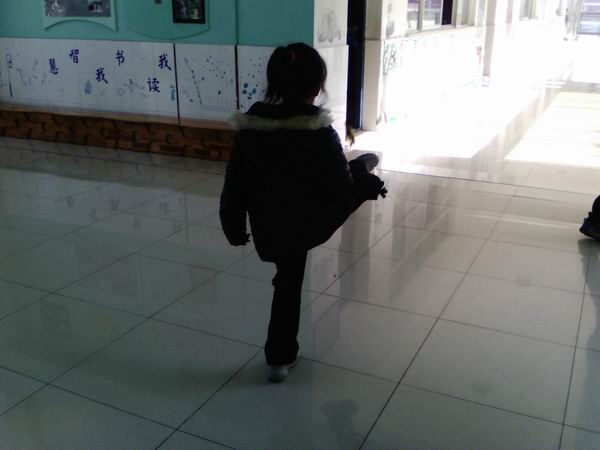 中高年级同学利用过道踢起了毽子。既放松了身心,又避免了奔跑等剧烈运动带来的危险。
