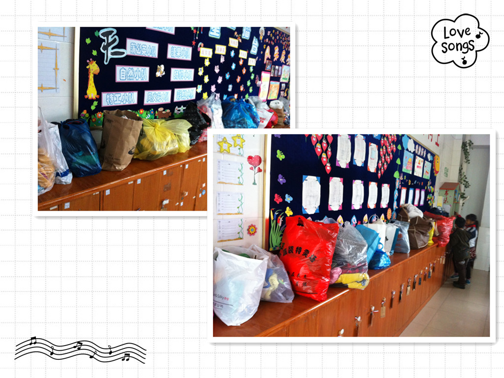 只要人人都献出一片爱,世界将会更美好!二年级同学为贫困地区孩子准备冬衣。