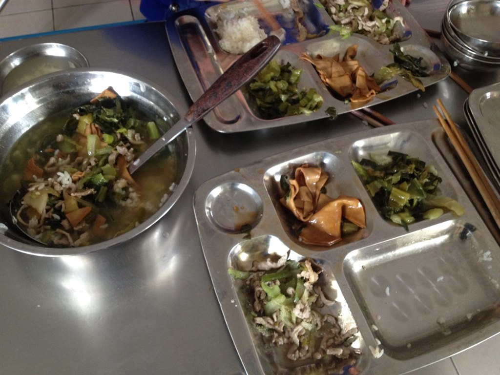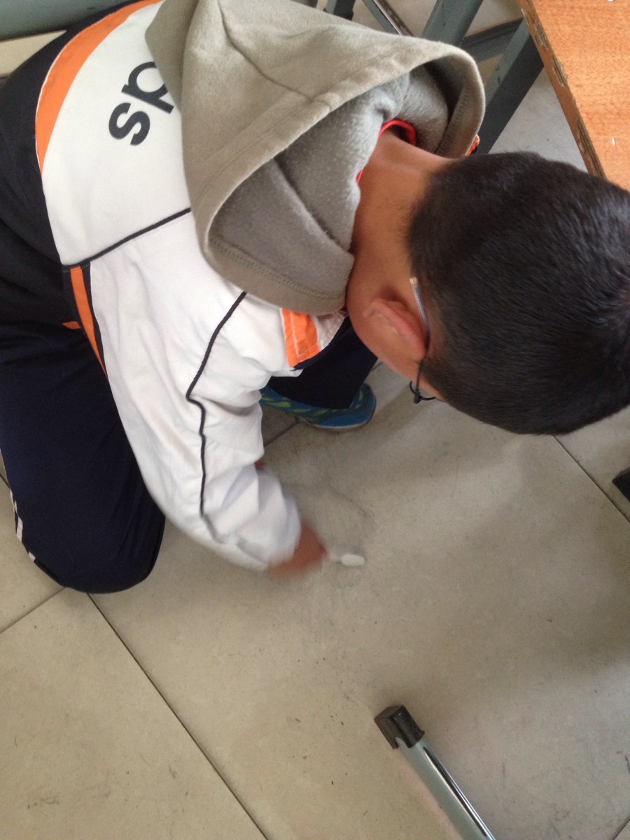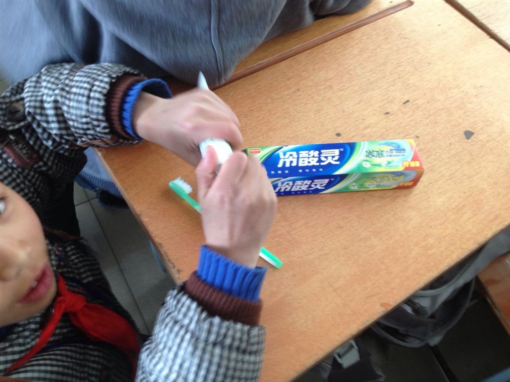 三(1)班同学中午正在牙膏牙刷清理地面呢!