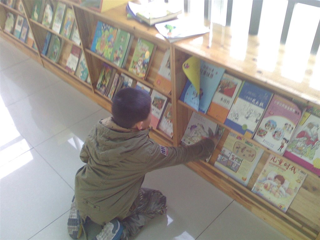 你看,一年级的孩子虽然刚把拼音学完,可他们也是一样的爱读书!
