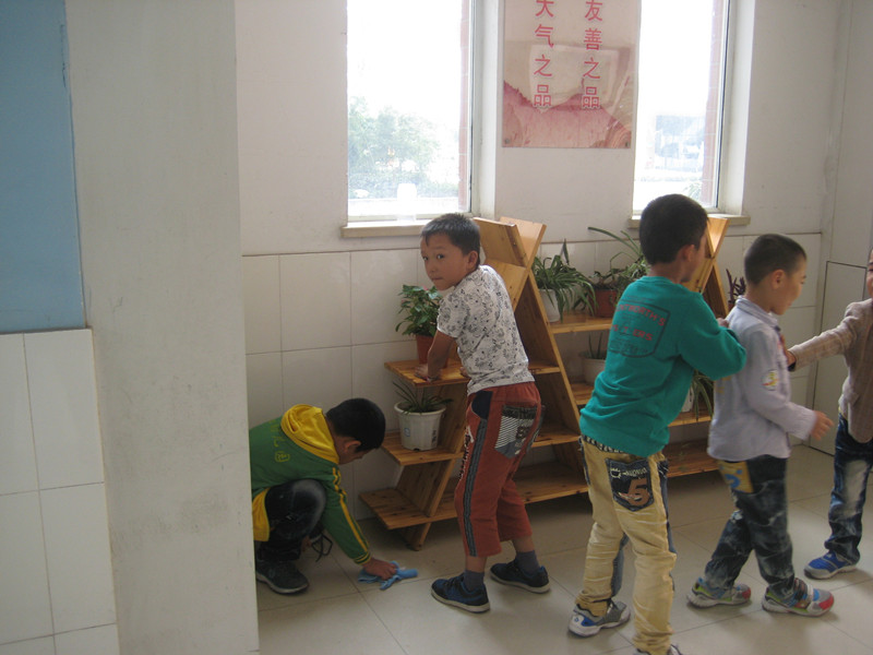 低年级学生常规有进步,午饭后能够主动进行值日工作。