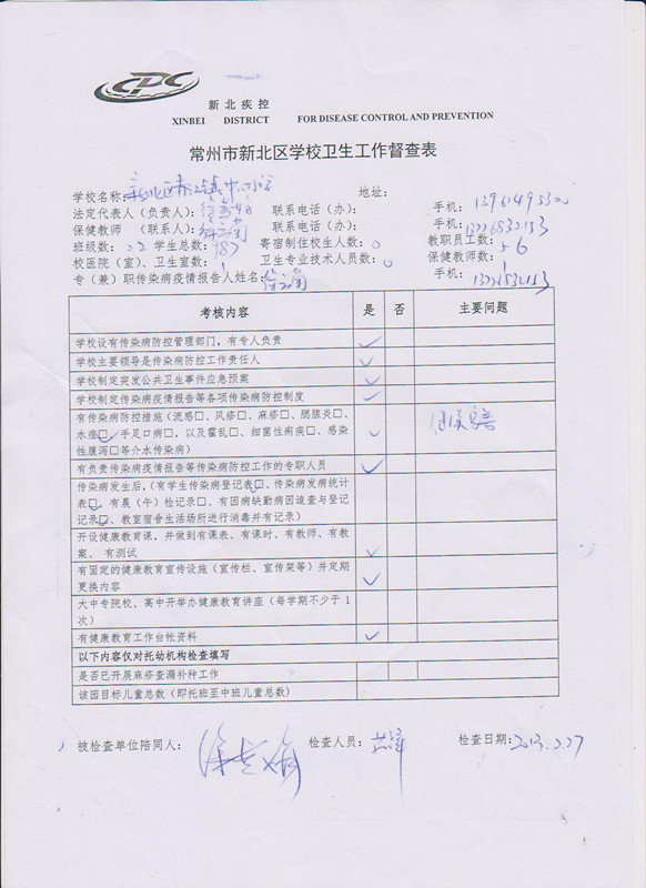 新北区卫生工作督查表、常见病综合防治督查表201302