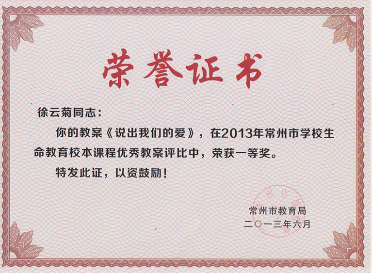 徐云菊2013市学校生命课程优秀教案一等奖