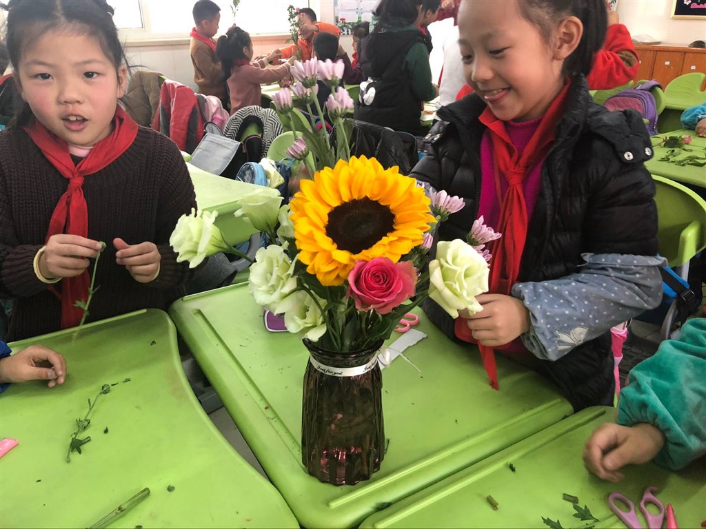 生活中不止有学校生活,还有多彩的家庭生活!二(2)班刘语晨妈妈,韩彤菲妈妈带着孩子们学习插花,细心的家长准备了精致的玻璃花瓶和漂亮的鲜花,从叶片的择留到花茎的长短,一步步引导孩子们完成他们的第一次插花作品。小小的课程,给孩子们打开了生活中温馨的那一扇门,让生活更美好!