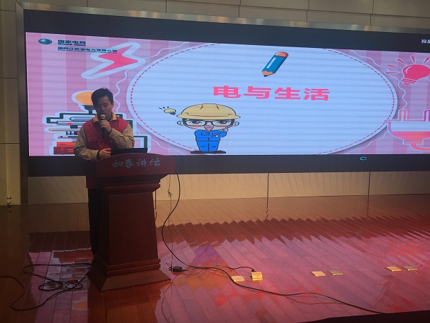首先,输电电缆室团支部书记、助理工程师吴昊老师围绕“电与生活”的主题,为小记者们带来了一场生动的电力知识科普讲座。他用简明扼要而又贴近生活的例子,一下子就让电褪下了神秘的外衣。“电是从哪里来的?”“为什么我们看不到电?”“电的传播速度有多快?”“现代电力之父是哪位科学家?”小记者们纷纷开动大脑思考,积极举手回答吴老师提出的问题,很多同学还得到了老师的奖品呢。