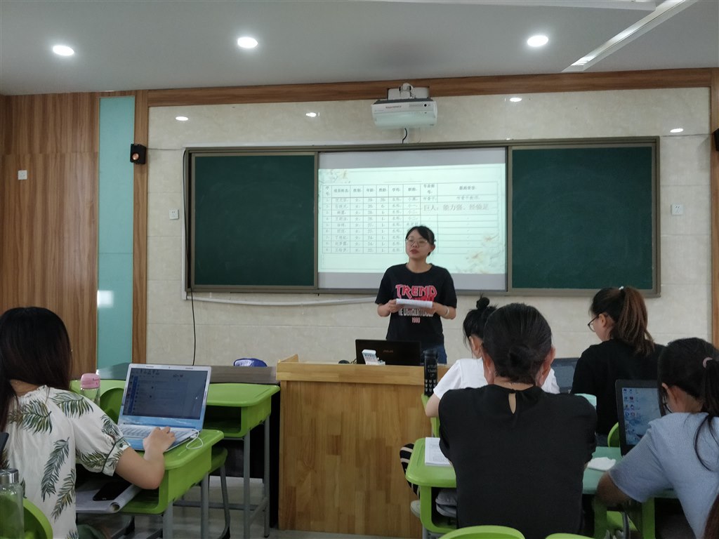 一年级备课组长黄燕老师理论功底深厚,在解读新课程标准的基础之上对本学年一年级教师、学生能力的发展进行细致地分析与规划。二年级王颖洁老师虽然是一位新的备课组长,但是她的创意却非常吸引人。她将“巨人与我们”作为交流主题,“巨人”既是在备课组中是经验丰富的老教师,也是课堂上传授知识的每一位老师。“我们”既是需要认真解读、提升教学能力的教师,也是每一位课堂中积极思考、不断发展的学生。三年级王尹希老师以思维导图的形式系统地罗列了三年级学生一学年需要习得的语文要素,并对如何评价反馈作了系统的思考。四年级张蕾老师全面设计了整个学期的课外阅读和习作教学需要关注的重点。五年级陈慧老师重点解读了如何提升学生快速阅读的能力,主要通过 四种方式对学生阅读速度进行有效扎实地提升。六年级蒋海晨老师重点关注突破教学质量的种种措施,力求在扎实有效的语文课堂中提升学生关键能力。