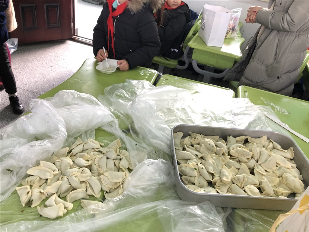 三(4)班的包饺子活动别开生面,热闹非凡,数十名家长来到学校和孩子们一起包饺子跨年。孩子们看着自己包的饺子,满满的成就感洋溢在脸上。不一会儿的功夫,热气腾腾的饺子出锅了,大家高高兴兴地一边吃饺子,一边感受着年味,饺子的香气还吸引来了不少其他班级的小朋友呢。