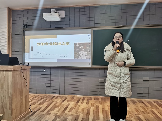 活动的第一个环节,三位行政代表分享了自己的专业成长之路。徐文娟副校长以《我的专业精进之旅》,用思维导图的形式展示个人的发展历程,我们看到了徐校长从一个实践型的教师转变为研究型教师的历程;教师发展中心陈小燕主任以《尝试,探寻自己的边界》进行分享,她结合本学期自己第一次尝试做的一些工作,从:尝试,可以是纵向的突破;尝试,可以是横向的突围;尝试,可以是纵横的交错三方面进行交流。学生发展中心周海娣主任的分享主题为《丰富体验,儿童站在学校正中央》,她先用视频形式展示这学期学生发展中心开展的一系列丰富多彩的活动,接着,周主任从全员育人,夯实根基育新人;节点事件,全力以赴铸品牌;缤纷活动,丰富体验有成长方面具体展开分享。