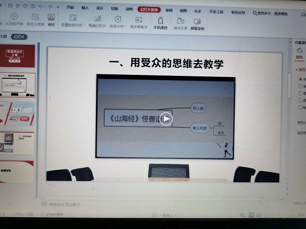 相对来说,青年教师对现代教育技术的掌握要优于年长一些的老师。会议伊始,由现代教学技术运用相对成功的季婕老师进行如何录播和直播的相关分享,季老师提出要以受众的思维去进行线上导学工作,这也是学校一贯坚持的以学生为中心的培育理念。