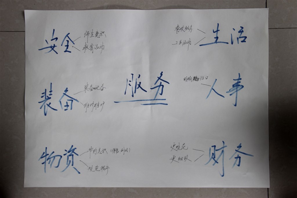 后勤保障中心聚焦“服务”这一关键词,从“安全、装备、物资、生活、人事、财务”等六个方面分析了存在的问题和改进的建议;