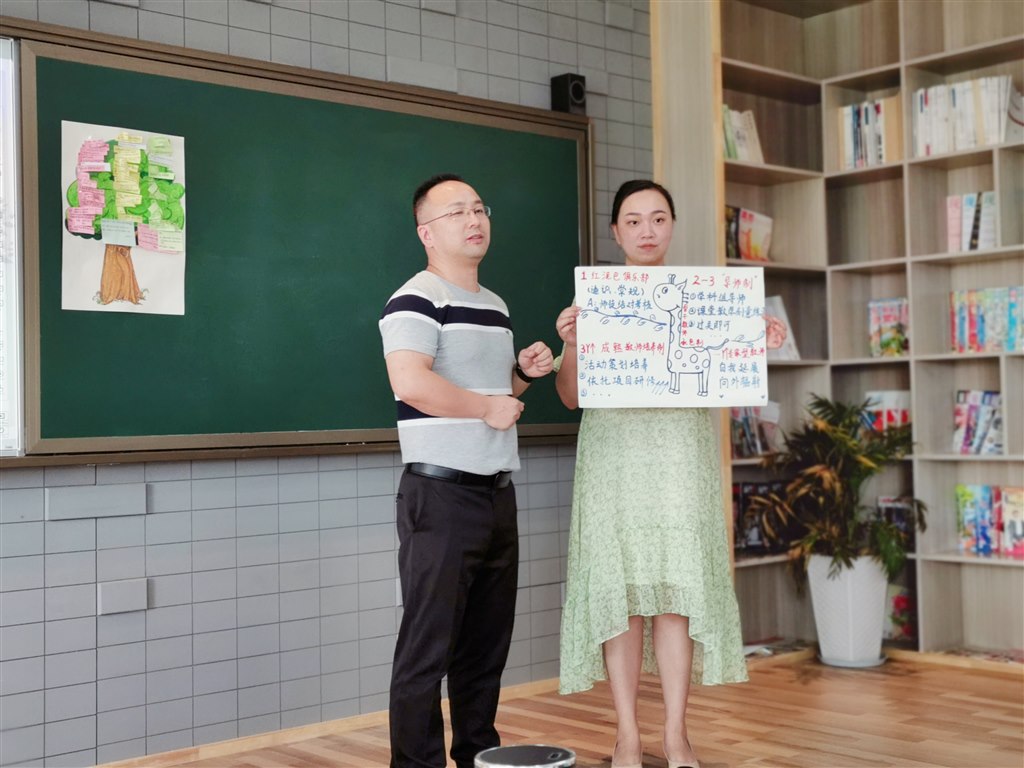 陈小燕老师倡导让校本培训成为青年教师成长的舞台。一是要定人选,依托学校“赋能教师”项目梳理不同层次的青年教师。二是定目标,依托教师的专业发展能级,确定发展目标。三是定内容,教师依据自己的发展方向,交流自己的成长轨迹,赋能他人;曹灯娣老师以“发展人、培养人”为目标分享了一体多翼式培训、教学方式的变革;张妍老师“60%法则”:作为一位青年leader,深知自身还有很多修炼之处。因此,在开展活动时,以60%的要求团队的伙伴,以100%的标准严格要求自己,向着最佳状态出发!汤华锋主任“斜杠式”管理注重轻重缓急,分配好学校信息化建设和教师团队发展工作的权重时间,利用好各种平台,进行教学工作,开展丰富多彩的学生活动。各层次的教师都能根据需求,私人定制学习清单,个性化发展。