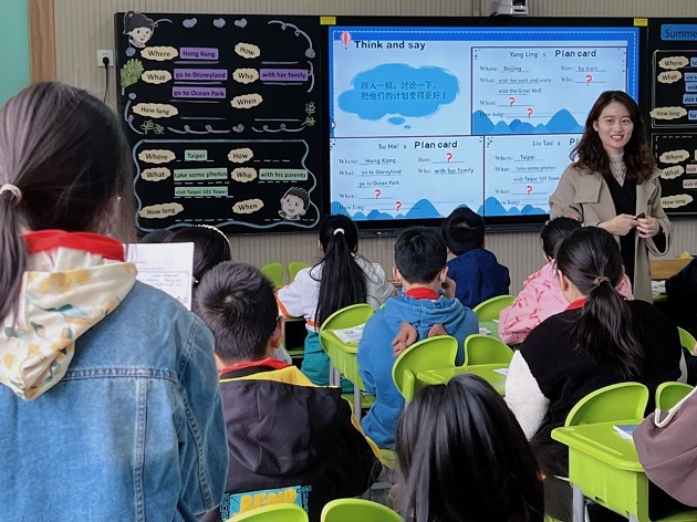 曹倩倩老师给我们带来的是六下U7 《Summer holiday plans(story time)》的课堂。曹老师最初便以一首轻松活泼的Chant导入,并自然衔接到本单元主题Summer holiday。同时曹老师在课堂中根据学生的实际情况出发,适时恰当地搭建有助于提升学生语言和思维能力的支架,以此达成良好的教学效果。