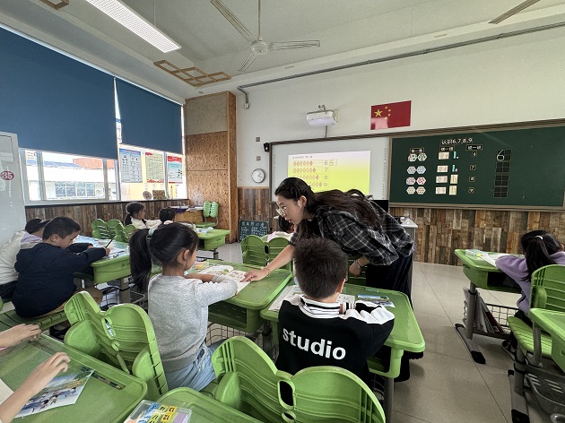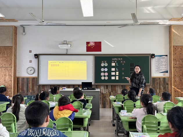 刘蓉老师执教的是一年级的《6-9的认识》。本课从校园课间活动的情境导入,利用色彩斑斓的教具和贴近生活的实例,将抽象的数字6-9转化为学生触手可及、直观感受的知识,发展学生的数感。