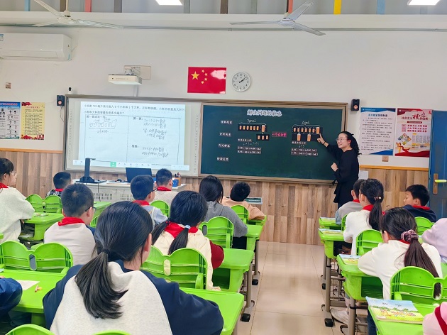 秋风和煦无限好,学思共研正当时。11月5日下午,新北区小学数学学科基地展示活动在春江中心小学如期举行。本次活动聚焦课程·教学·空间协同设计,旨在深入理解“新课标、新教材、新理念”,全区各小学骨干老师以及春小全体数学老师齐聚一堂,共同探讨“双新”背景下数学教学的创新与实践。本次活动由春江中心小学数学教研组长左哲岚老师主持,活动主要分为课堂展示、主题汇报和专家引领三大板块。