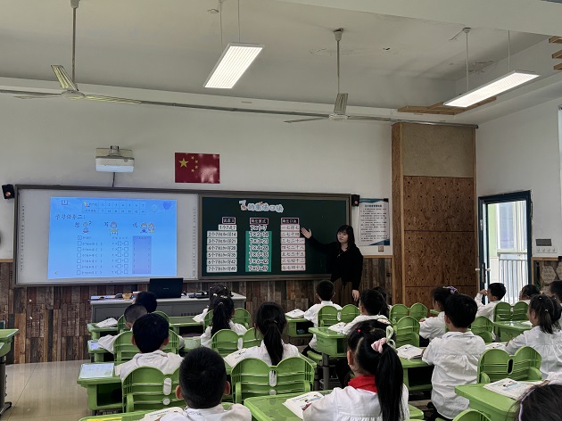肖悦老师执教的是二年级的《7的乘法口诀》。本课以“七巧板拼小猫”为趣味切入点,从几个几相加到乘法算式再到编制口诀,结合互动游戏、生活实例等形式,将抽象口诀转化为直观场景,帮助学生编口诀、记口诀、用口诀,提升数学思维能力。